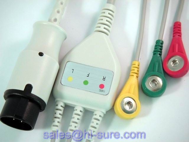 Datex 1-Piece 3-Lead ECG Cable
